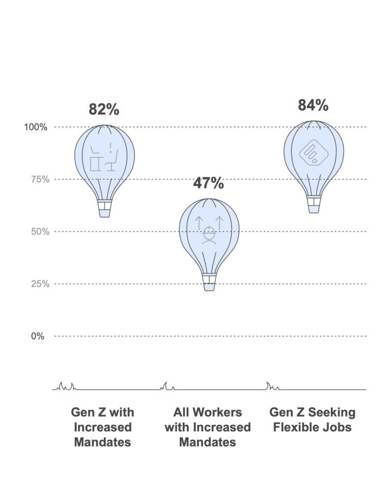 According to new data from Owl Labs, a staggering 82% of Gen Z knowledge workers say their company has issued or increased in-office mandates this year. That’s nearly double the average across all workers (47%). And while companies may be betting that more time in the office equals more productivity, the fallout suggests otherwise: 84% of Gen Z employees are now actively looking for more flexible jobs.