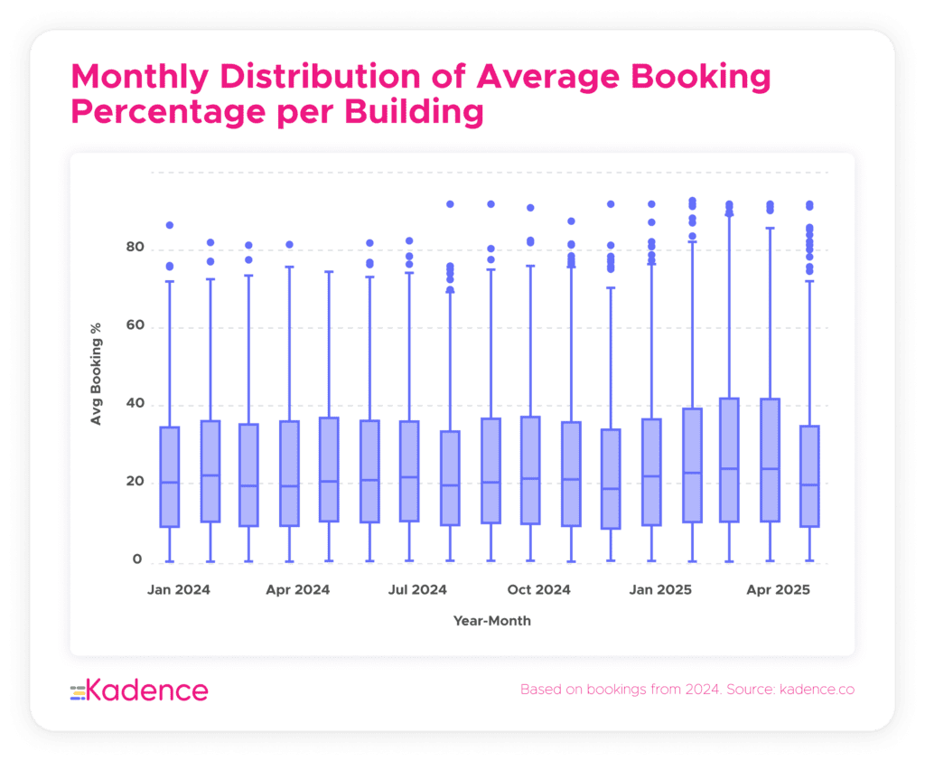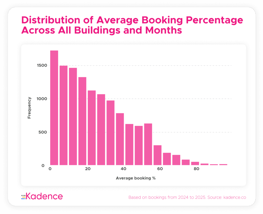 These utilization rates are strikingly similar to what we see across Kadence’s customer base — suggesting that our users mirror global norms in how office space is being used.
